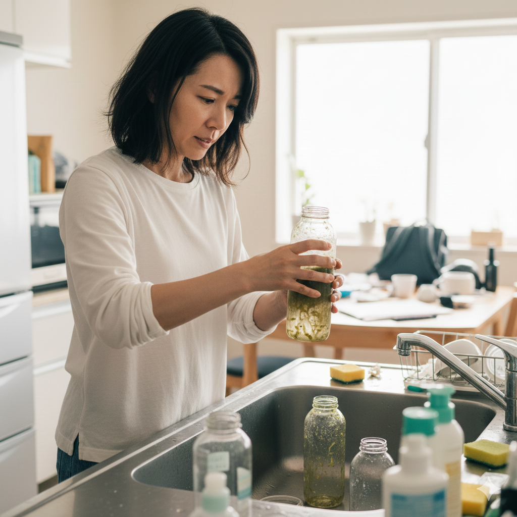 一番の水筒のヌルヌル対策は、飲み終えたら放置しないこと。継ぎ足しは菌を培養しているようなものです。といっても、完璧を目指すと疲れるので、「空になったらとりあえず水を入れておく」だけでも、後の掃除がグッと楽になりますよ。